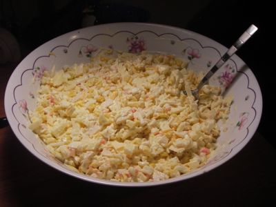Отварить рыбу в пряном отваре. Охладить, не вынимая из бульона. Отварить картофель и морковь, нарезать мелкими кубиками. Разделить овощи пополам: одну половину посолить, заправить майонезом, зеленым горошком и мелко нарезанными солеными или свежими огурцами. Заправленные майонезом овощи выложить на блюдо. Поверх овощей аккуратно расположить куски рыбы и залить их майонезом, слегка разбавленным процеженным холодным рыбным бульоном (на 100 г майонеза 1—2 ст. ложки бульона). Украсить маслинами без косточек. Вокруг кучками разместить остальные овощи, украсить кружочками помидоров или красным маринованным перцем. Рыба — 700 г, картофель — 200 г, морковь — 100 г, огурцы соленые — 100 г, горошек, зеленый — 100 г, майонез — 150 г, маслины— 100 г, помидоры или маринованный перец — 50 г, лук — 70 г; для пряного отвара: петрушка — 50 г, лук репчатый — 70 г, лавровый лист — 2 шт., перец душистый — 3—5 горошин, соль по вкусу