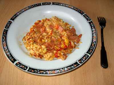 Мясо — 400 г, белый хлеб — 70 г, вода — 0,1 л, мука — 70 г, жир — 50 г, лук — 100 г, томат-пюре — 50 г, или помидоры — 150 г, соль по вкусу.