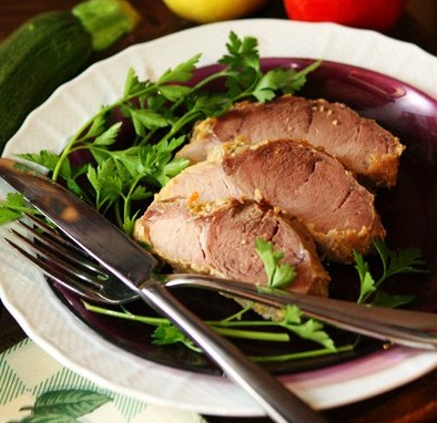 Зайца промыть, разрубить на части, срезать пленки, куски сложить в кастрюлю, залить водой с уксусом и оставить на 2—3 часа. После этого куски зайца вынуть из маринада, положить на сковороду, посолить, прибавить очищенные и нарезанные коренья и лук, полить маслом и поставить жарить в горячий духовой шкаф на 1 час. Во время жарения надо периодически поливать зайца образовавшимся соком. По окончании жарения зайца разрубить на куски, сложить в кастрюлю, залить соусом, приготовленным из сметаны и сока. Кастрюлю закрыть крышкой и поставить в духовой шкаф на 25—30 минут для тушения. Для приготовления соуса: сметану и сок, полученный при жарении зайца, влить в кастрюлю, посолить, поставить на огонь, дать закипеть, затем прибавить муку, разведенную бульоном или водой, проварить при непрерывном помешивании в течение 3—4 минут. После этого соус влить в кастрюлю с зайцем. При подаче переложить зайца на блюдо с соусом и посыпать мелко нарезанной зеленью петрушки. На гарнир можно подать жареный картофель, моченые яблоки и маринованные овощи, фрукты и ягоды. Заяц — 3 кг, морковь — 150 г, петрушка (корень) — 100 г, лук. репчатый—150 г, масло сливочное — 70 г, уксус — 100 г, вода — 1 л, сметана — 400 г, мука — 50 г, соль по вкусу.