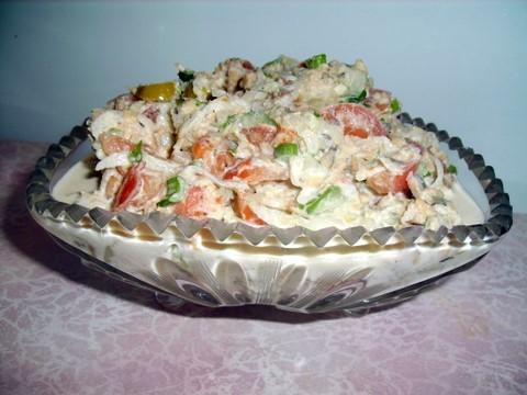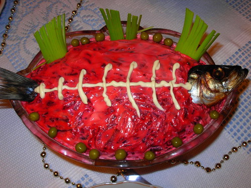 4 яйца, 250 г филе селедки, 100 г помидоров, 50 г огурцов (1-2 шт.), 2 столовые ложки майонеза. Сварить яйца вкрутую, очистить и разрезать вдоль на половинки. Немного срезать белок, чтобы хорошо стояли на тарелке. Филе селедки (почищенное, вымоченное в молоке, отжатое) нарезать вдоль полосками. Свернуть их "улитками" и положить сверху на кусочки яйца. Украсить майонезом, между кусочками яиц выложить полоски из огурчика, помидора, зелень петрушки.