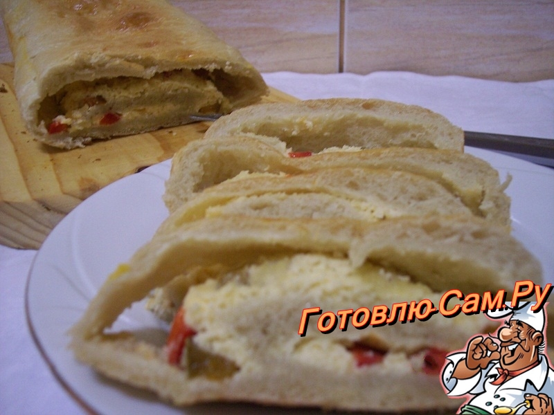 Тесто: 1 ст. сметаны, 0,5 ст. майонеза, 3 яйца, 1 ст. муки, 1 чл. соды (погасить уксусом). Начинка: 1 б. консервированного лосося (или другой рыбы), лук- по вкусу. Все продукты для теста смешать, вылить половину теста в сковороду, разложить равномерно начинку, залить остальным тестом. Выпекать 20 мин. Готовя начинку, с рыбы слить сок, размять и смешать с поджаренным луком. Ну, а это блюдо - просто объедение, и на тарелке выглядит красиво и аппетитно. Приготовьте, не пожалеете.