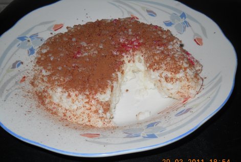В кипящую подсоленную воду всыпать перебранное и промытое пшено и варить до полуготовности, затем добавить сливочное масло, сахар, творог, все хорошо перемешать и варить до готовности. Отдельно подать молоко, простоквашу, кефир. Пшено — 160 г, вода — 0,4 л, творог — 200 г, сахар — 20 г, масло сливочное — 60 г, соль по вкусу.