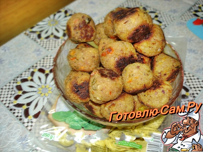 В сильно разогретом свином жире обжарить репчатый лук, помидоры и стручковый перец, предварительно мелко нарезанные ножом. Добавить соль, черный перец, мелко нарезанную петрушку (зелень). Подготовленную говядину пропустить через мясорубку, добавить растертый чеснок, мускатный орех, мякиш хлеба, предварительно замоченный в бульоне. Полученную котлетную массу хорошо размешать, сформовать из нее шарики, обвалять в муке и уложить в посуду, залить кипящим бульоном. Довести котлеты до полуготовности, добавить промытый рис, нашинкованную белокочанную капусту, спассерованные лук, помидоры, перец и варить, пока вода не выпарится. Подавать с зеленью. Жир — 60 г, лук — 70 г, помидоры — 150 г, перец — 70 г, зелень петрушки — 30 г, перец, мясо — 500 г, чеснок — 20 г, мускатный орех — 1 шт., хлеб — 80 г, яйца — 2 шт., мука — 20 г, бульон — 0,4 л, рис —100 г, капуста — 1 кг, соль по вкусу.