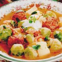 Можно подать соус с варенным картофелем и телятиной.
